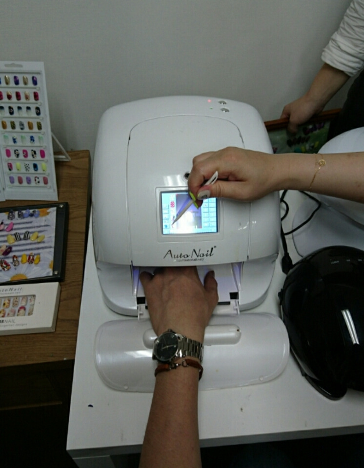 この機械を使うとデザインを爪にプリントできるんです!