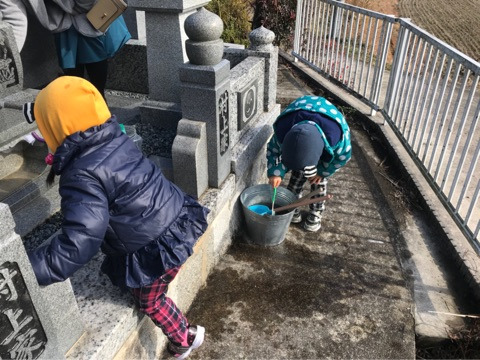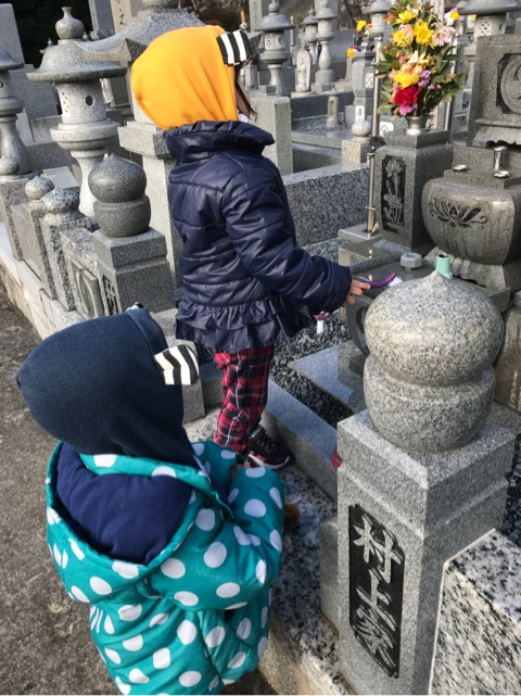 お墓もしっかり?磨いてくれてます。 たぶんですが…。 まあ、これも家族でくるお墓まいりですよね。