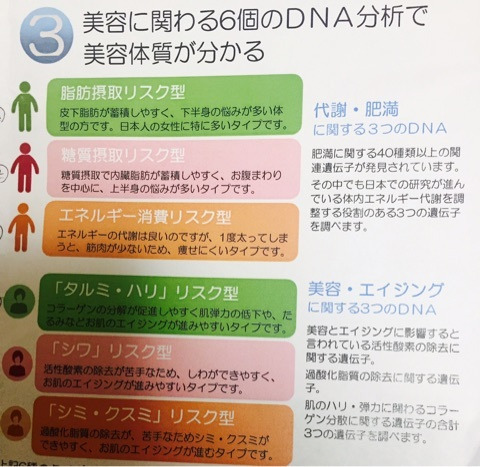 DNAを調べることで自分の体質がわかり、それによって、自分にあった食事、運動、美容法、ダイエット法がわかるそうですニコニコ