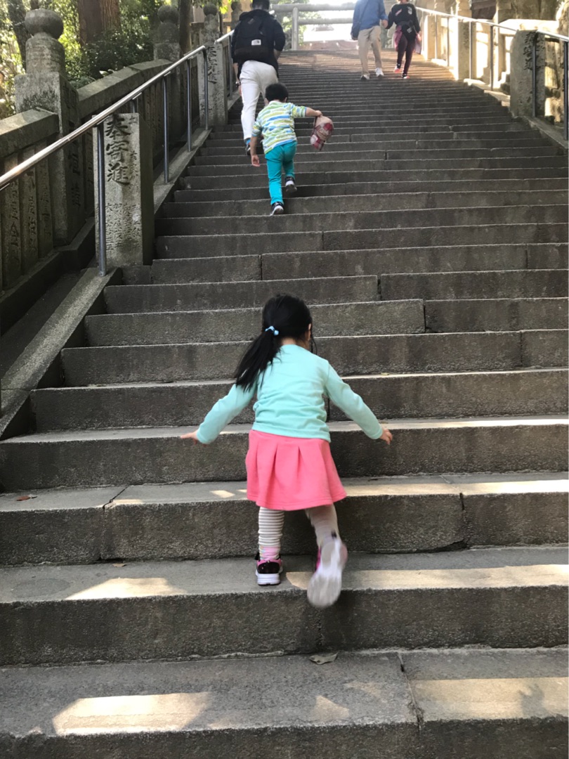 下りの階段は、かなり怖いので、おんぶして降りてきました。 それでも、かなりハードでした。