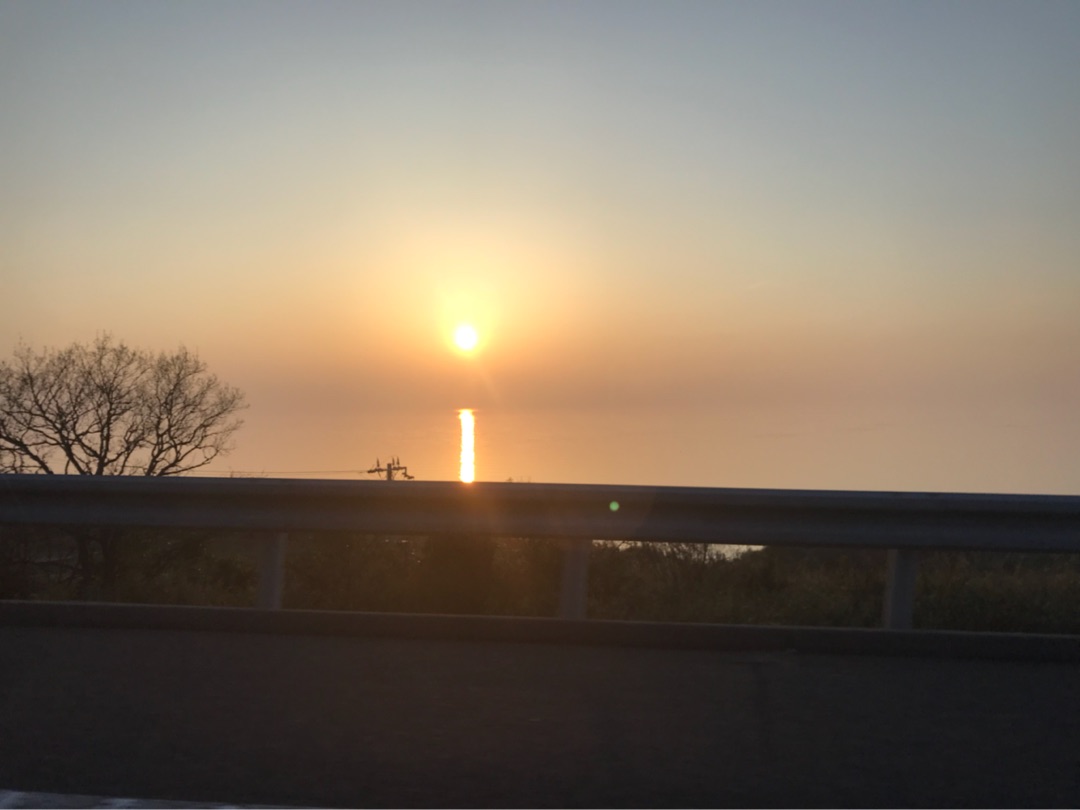 帰りの車は、途中まで奥さんが運転。 いつもは、最初から最後まで運転してたので外の景色を楽しんでる場合じゃなかったんですけどね。 今回は、かなり運転してもらって、キレイな夕日に遭遇。