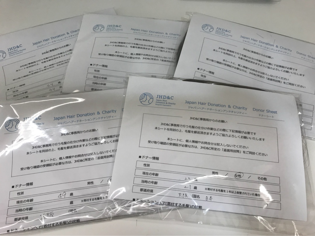 そうこうしている間に沢山の髪の寄付「ヘアドネーション」が集まって来たので事務局に責任もって送らせて頂きました。