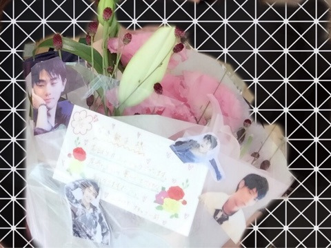 サプライズでスタッフのまやがO様の大好きな羽生くんの切り抜きを花束に添えてくれたので、それをプレゼント💐