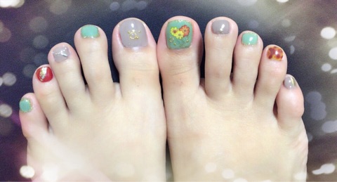 フットネイルだけはセルフで手に合わせて秋ネイルにチェンジ
