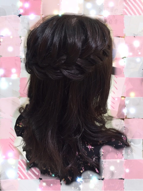 仕上げは簡単片編み込みのヘアアレンジで更に可愛く仕上げました