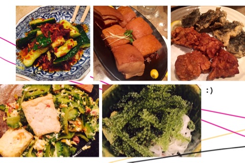 ゴーヤやラフテー、海ぶどうなど沖縄料理を味わえました照れ