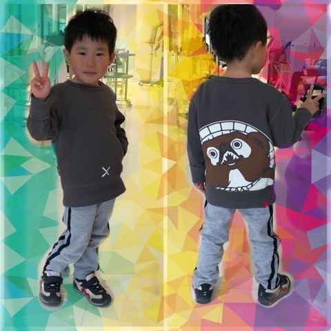 お母さんとお揃いのたぬきの服がとっても可愛かった爆笑爆笑爆笑