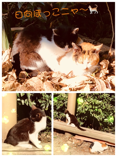 2匹のネコが寄り添って、日向ぼっこしている姿がなんとも可愛い💕