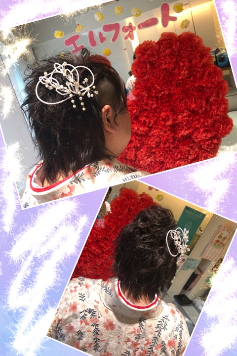 N様は両サイド刈り上げにしていて、髪の毛も短かったので飾りをつけれるように編み込みをして動きをつけて華やかな仕上げました照れ