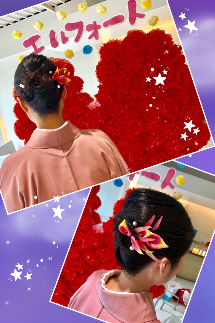 今回は和装にはピッタリの夜会巻きをさせて頂きましたおねがい