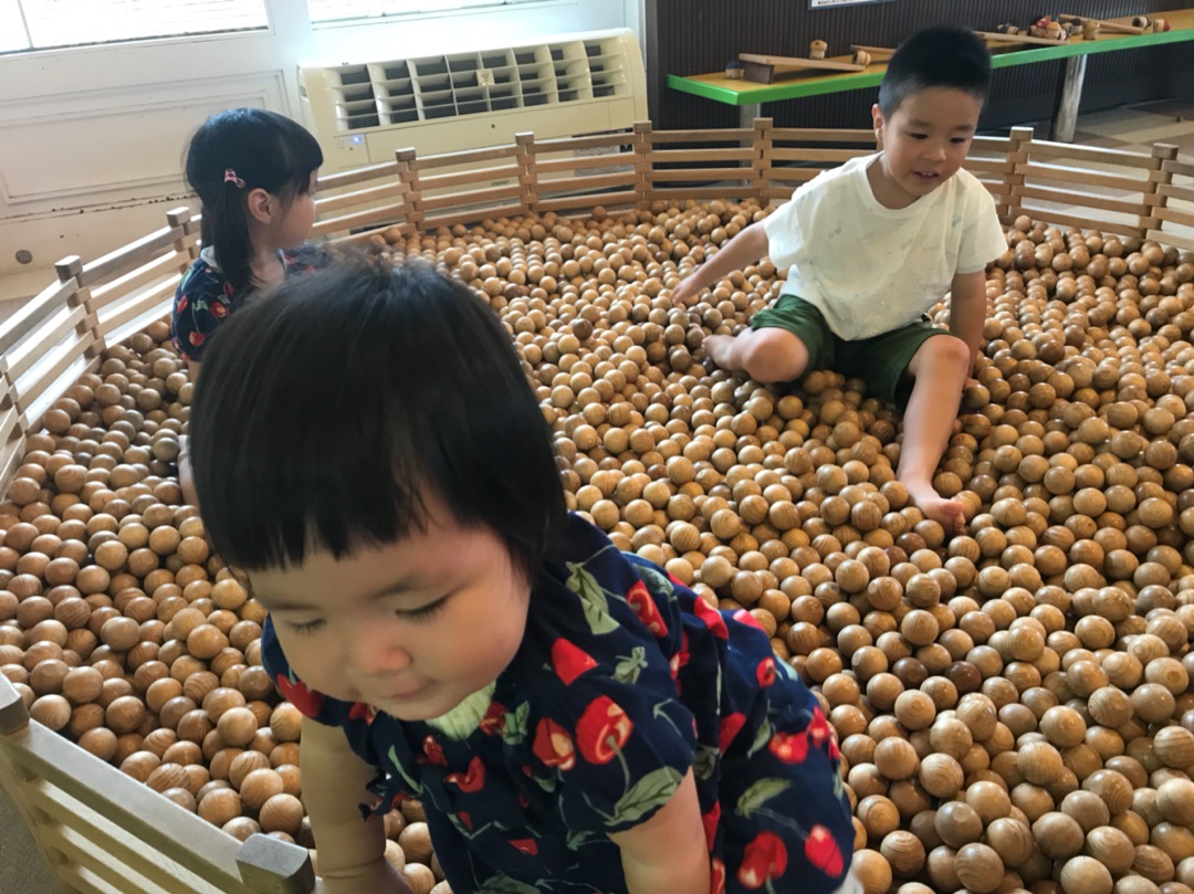 天然杉で出来たボールプール。 めちゃくちゃいい香り。 もう、何年も前に出来てるのにね。 ちなみに大人は、足が痛くって歩けない!