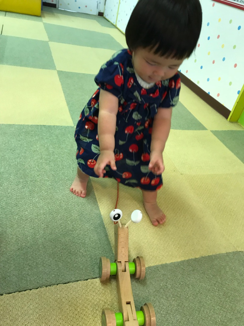 それに木製のおもちゃがあって、子供は、よろこんでます。