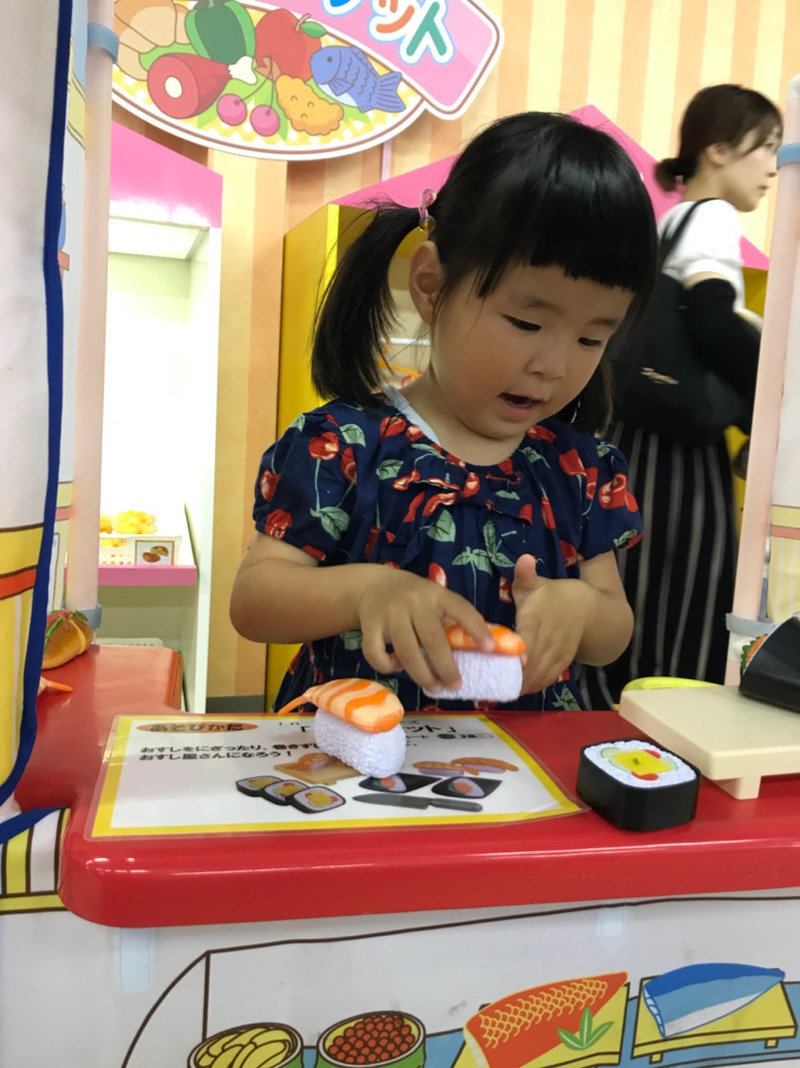 これは、お寿司屋さんになれます。 「いらっしゃいませ〜」って、あっちこっちから元気な声が聞こえます。