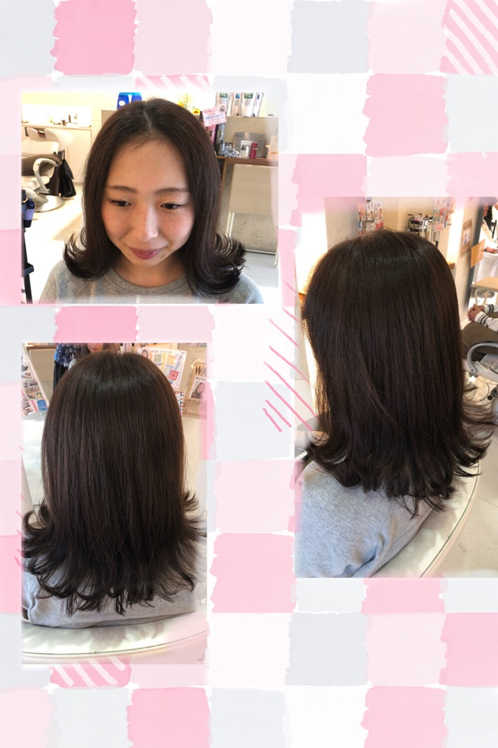 毛量の多いななみちゃん、今回は鎖骨ぐらいの長さに切って、扱いやすいように量を軽くして、仕上げは希望の外ハネで可愛くして完成
