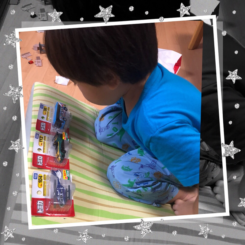 この日はお土産のトミカを並べて見つめています🚗🚗🚗