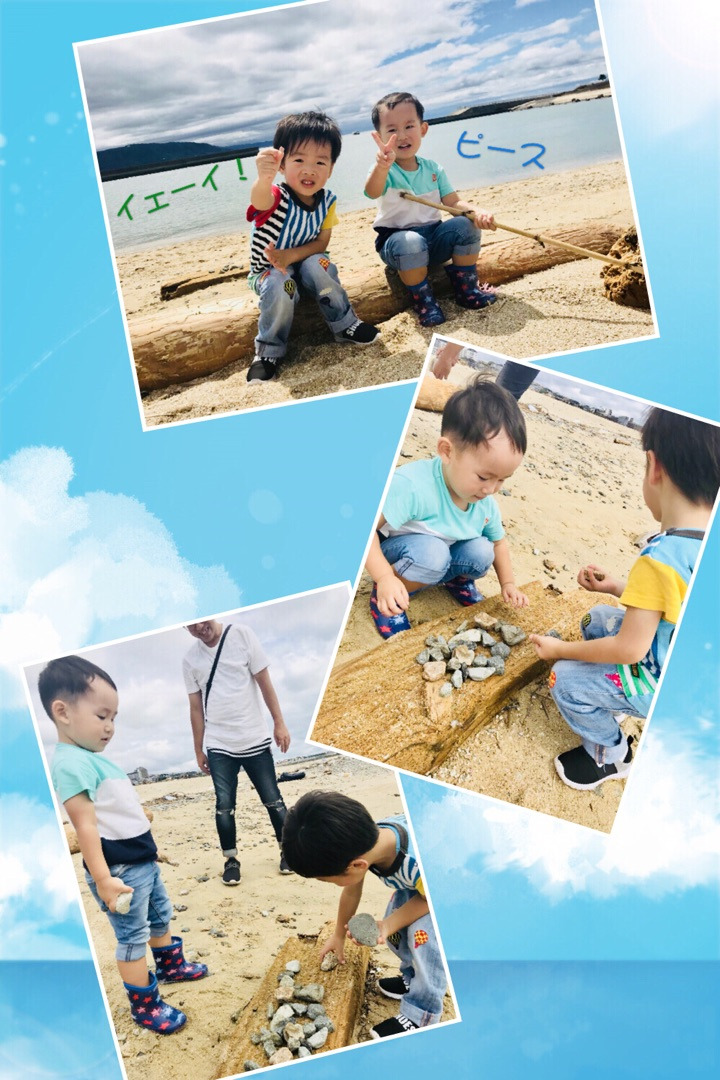 初対面の2人がいつの間にか仲良く石ころで遊んでます。子供は打ち解けるのがとても早くていいですね〜照れ