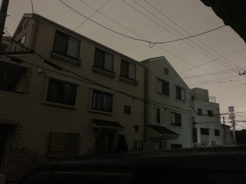 実家で、ご飯を食べた後に様子を見に帰ると、こんな感じ。 まさにゴーストタウン。 真っ暗です。 でもね、でもね、背中合わせの家は、電気がついてるんです。 なんで? ほんまに所々の停電。
