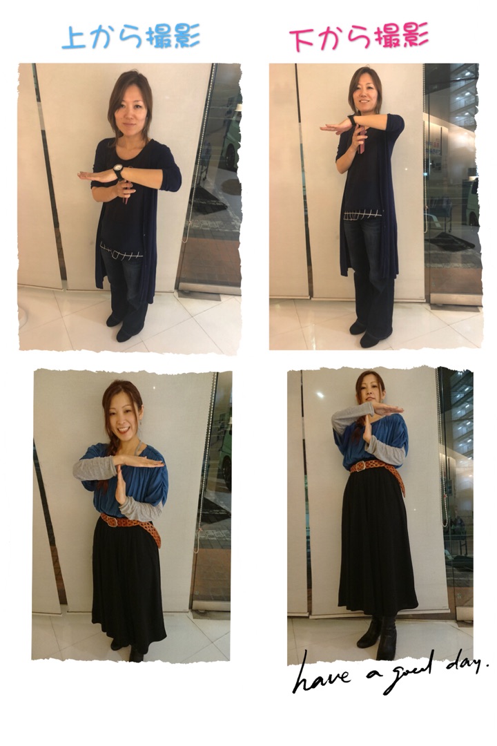 一方、下から撮るとスラッとした感じで撮れるので、スタイルを撮りたい時は下から撮るといいですね
