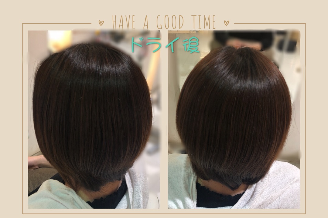 ドライ後は毛先のおさまりが良くなって、ツヤも出ていました