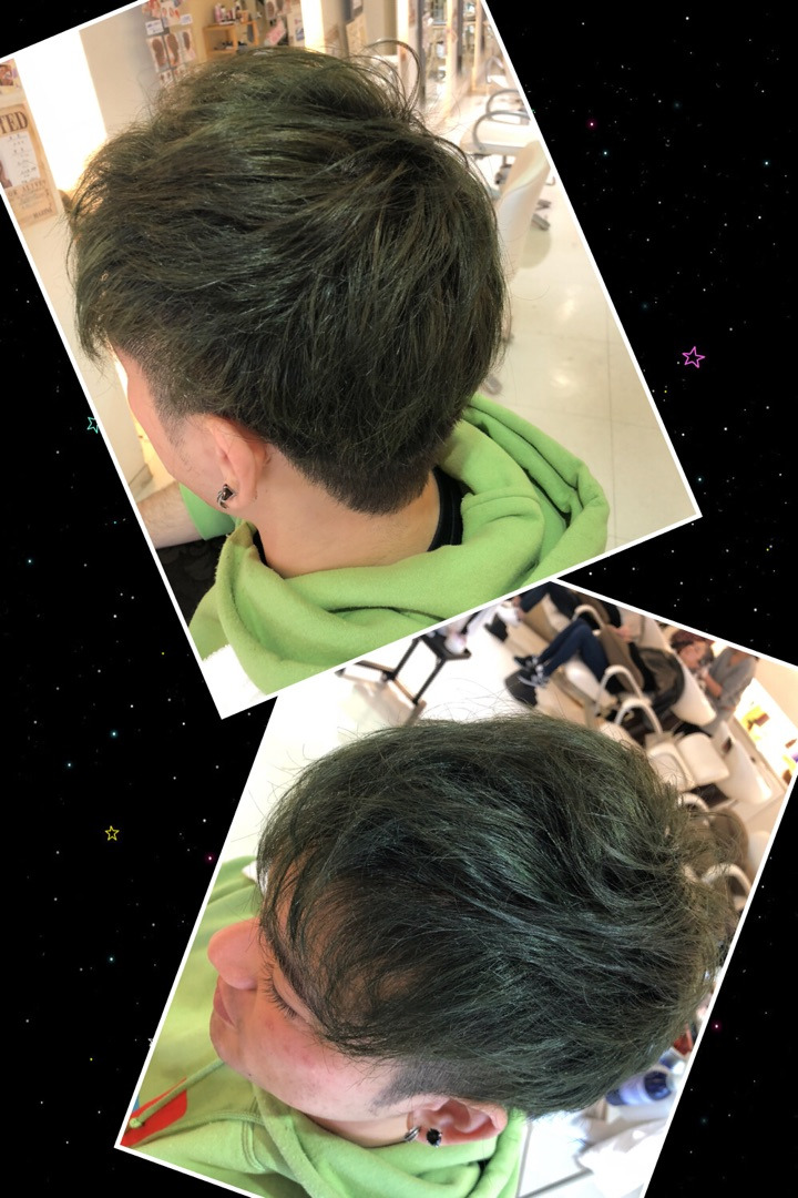 今回はカラーをしたいとのことだったんですが、店にあるカラー剤で出来る範囲でしか出来ないので、相談した結果グリーンが好きなのでグリーンカラーに決定