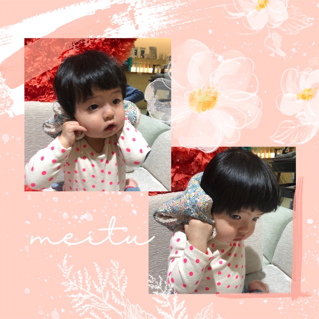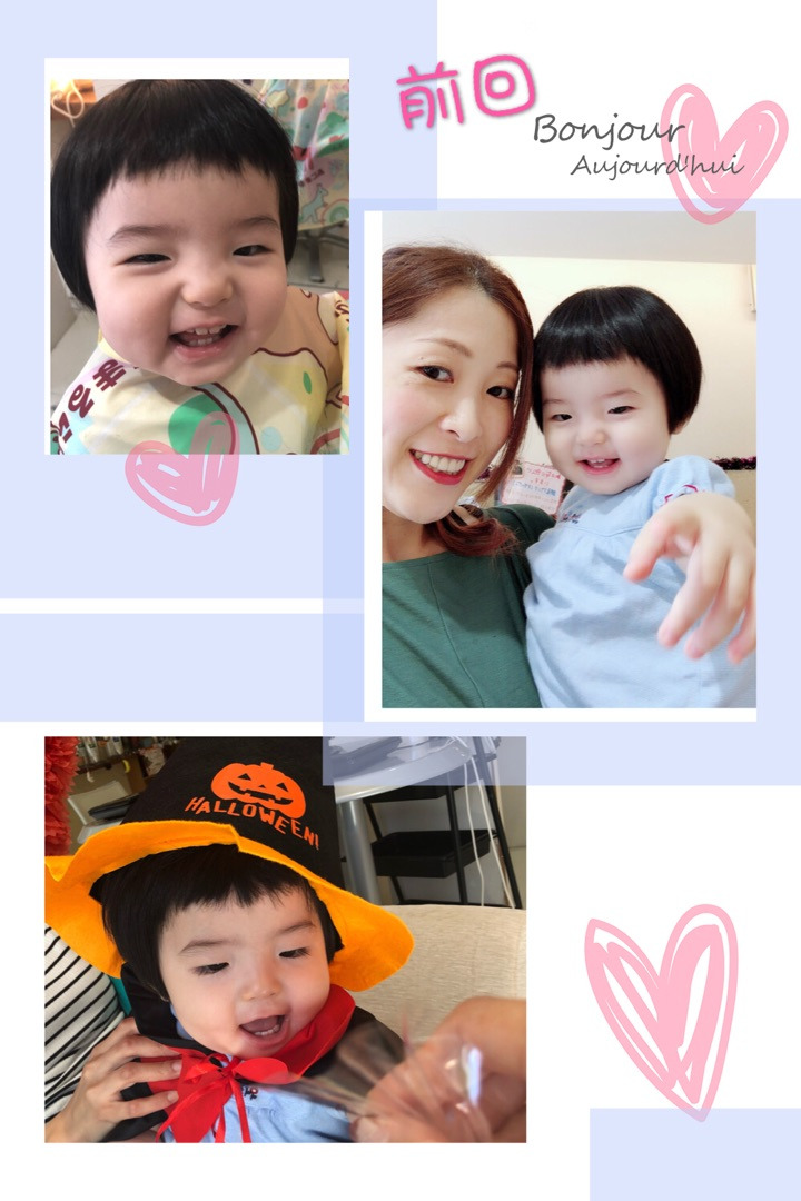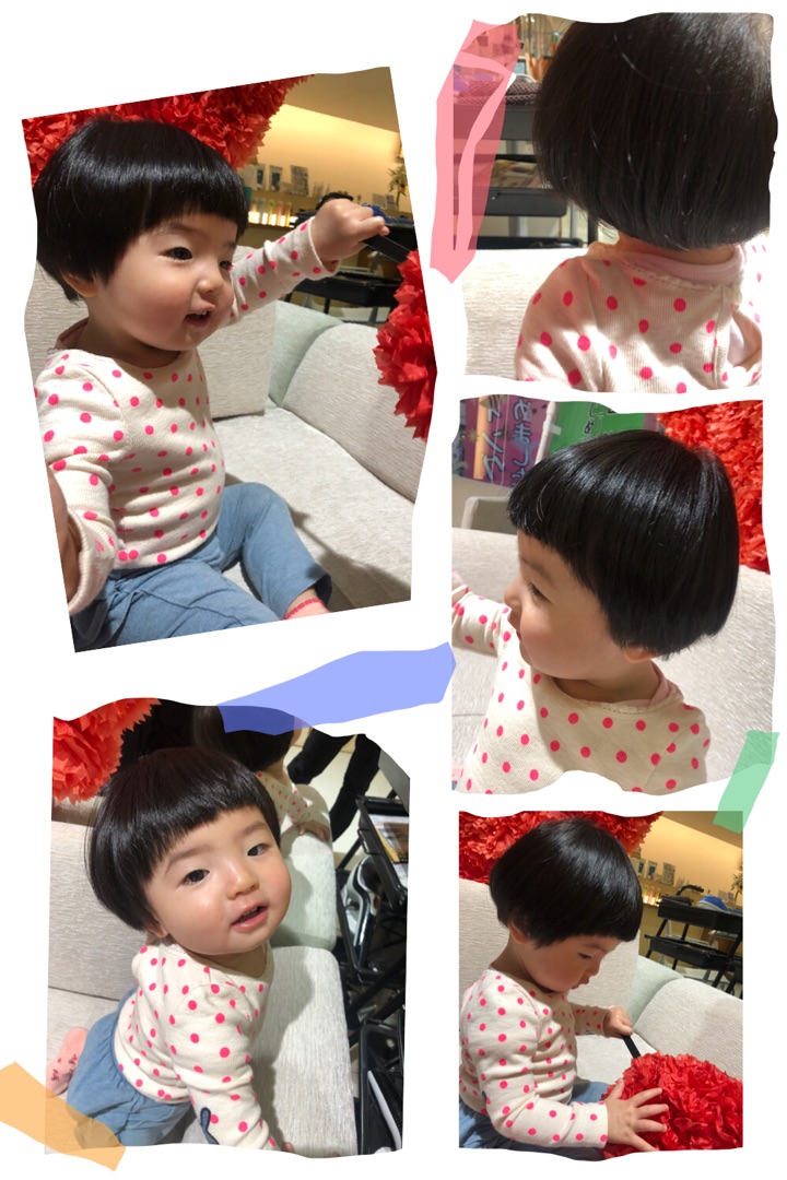 あんなに短く切った前髪が眉まで伸びていました。予約の時間に寝てしまったみたいで時間をずらしてのご来店でしたが超ご機嫌でカメラを向けたらしっかりカメラ目線をしてくれました