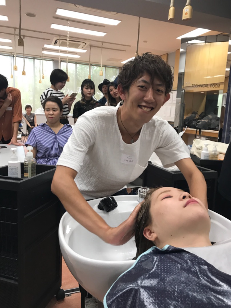 選手の皆さんの集合写真。 シャンプーってね、美容室のほとんどがところがすると思うんです。 最近では、シャンプーしないところもあるんでね。