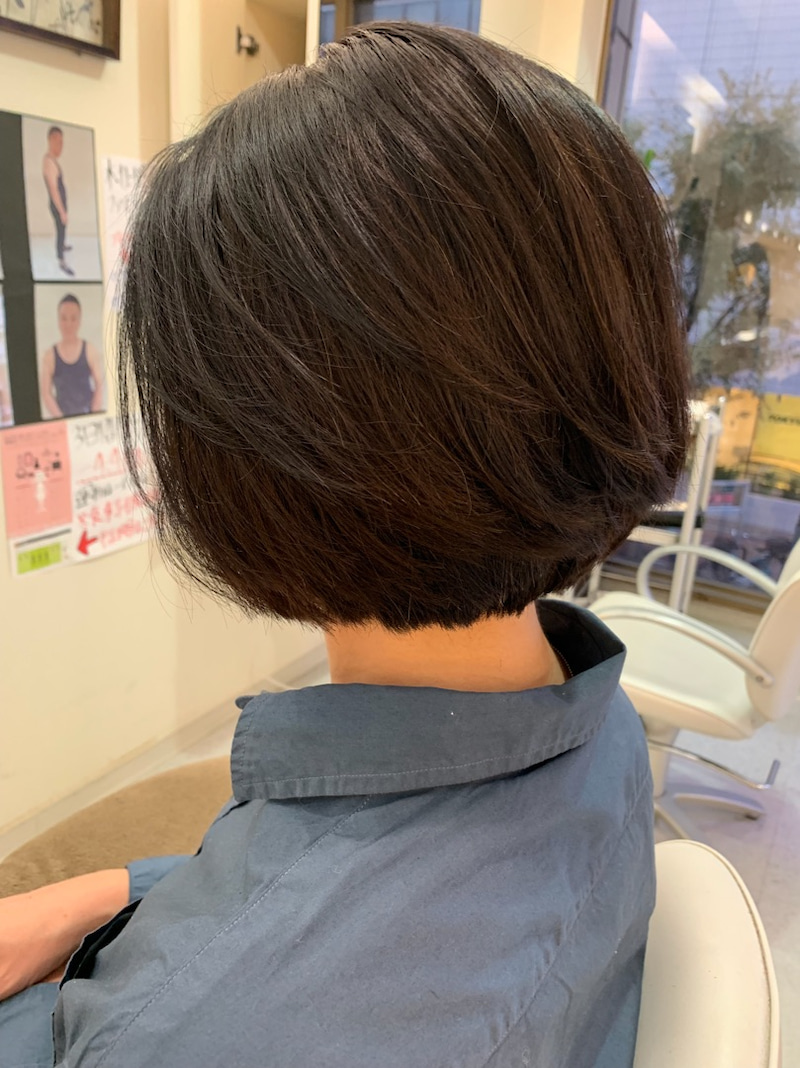 そして、仕上がりがこんな感じです。 ボブスタイルに仕上がりました。 仕上がりのスタイルも喜んで頂けました。