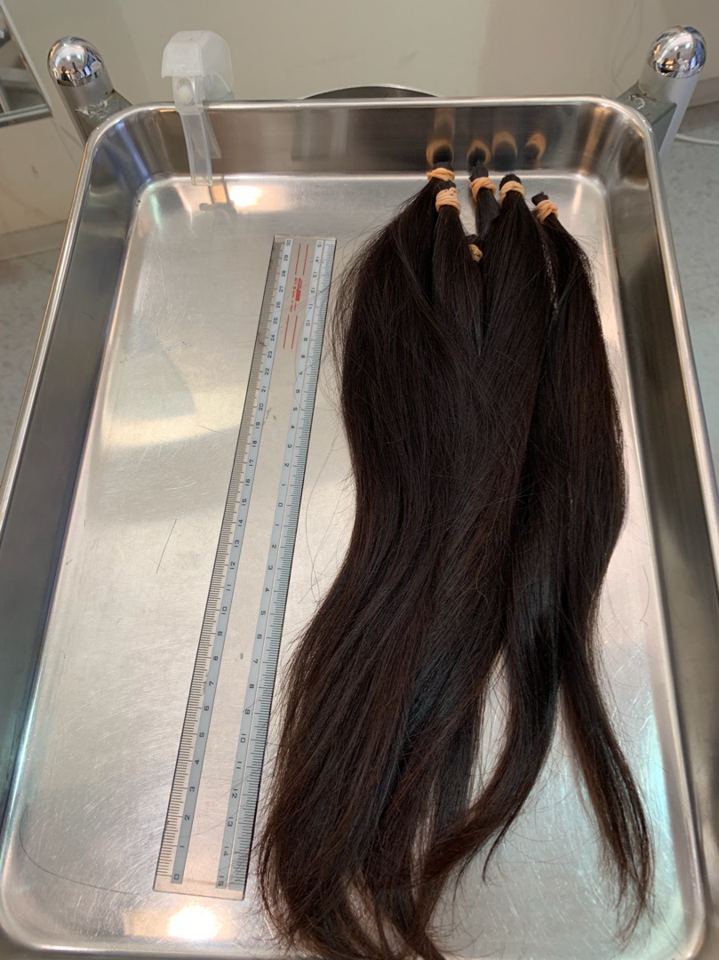 毛染めをされてるんですが、かなりキレイな髪です。 そう、毛染めをしててもパーマがあたっていてもヘアドネーションはできるです。