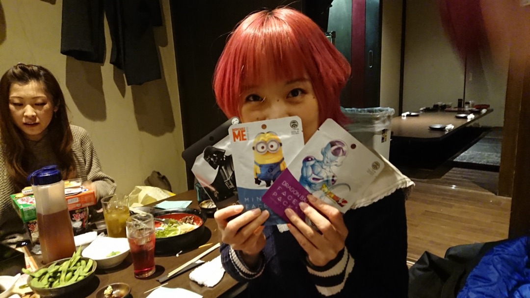フェイスマスクのセット。 フリーザとミニオンとダースベイダーです。 女子は、お顔が命ですからね。 そしたらね、そしたらね、そのマスクを早速、使いました! 男性スタッフがね。