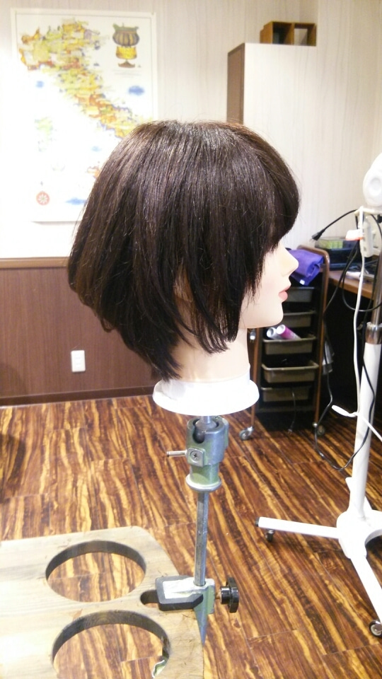レッスンをして、私 古田は、時間内に写真どうりにカットできるかをしました。