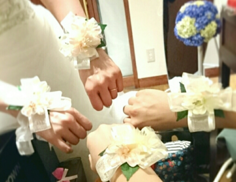 二次会に付けてもらおうと新婦にリストブーケをプレゼントしていたので最後にみんなで記念撮影!!