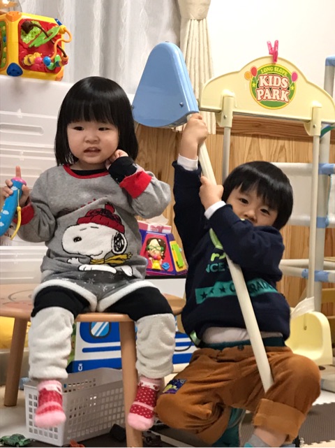 仲良く遊ぶ2人です。