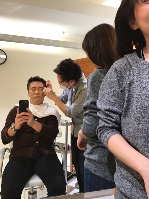 その横では、田家さんもヘアセットの練習してます。
