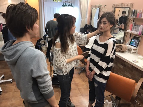 コテで巻いたり、メイクをしたり、最終のチェックをします。
