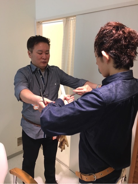 村上さんが、三好くんにシザーワーク直々に教えてくれてますニコニコ