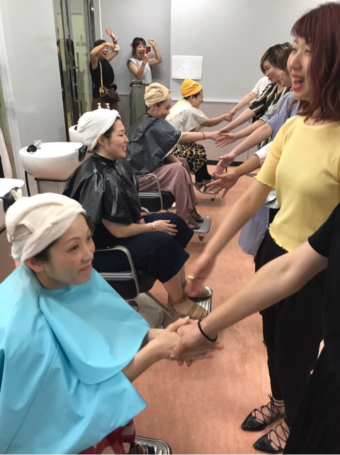 どちらにもう一度、シャンプーして欲しい人の手を握るって感じ。