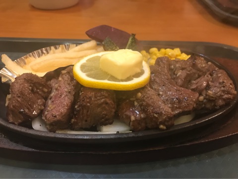 そして、楽しみの夜ご飯! 美ら海水族館の近くのパパイヤキッチンでご飯。 僕は、ステーキ! このボリュームがハンパない!