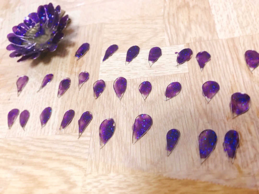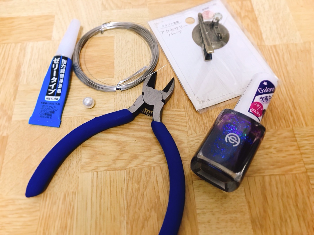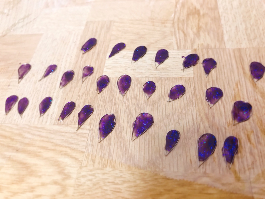 何個か作って、アクセサリーパーツに接着剤をつけ、