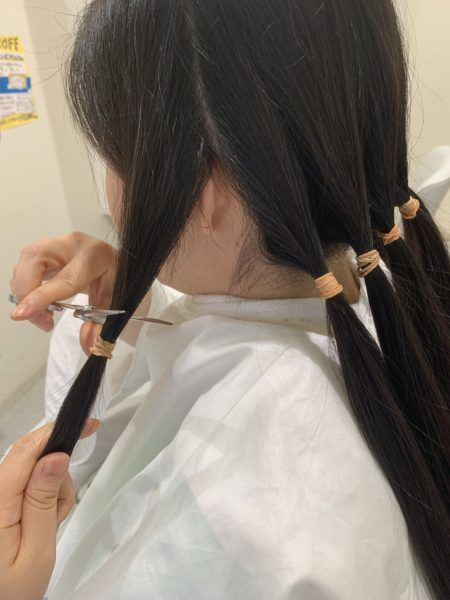 これだけ長くキレイに伸ばされていた髪を寄付していただけます。 カウンセリングでしっかりと切った後のヘアスタイルの打ち合わせをしてどのくらいまで切れるのかを確認してからカットをさせていただきます。