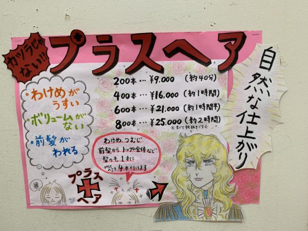 プラスヘアという髪に付けるエクステのようなもの。 そのポップを作ってくれたらこのポップです!