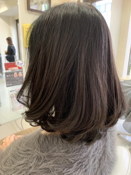 毛先を少しだけ巻いて動きのあるボブスタイルです。 一番動きの出る長さなので、さらにちょい巻です。