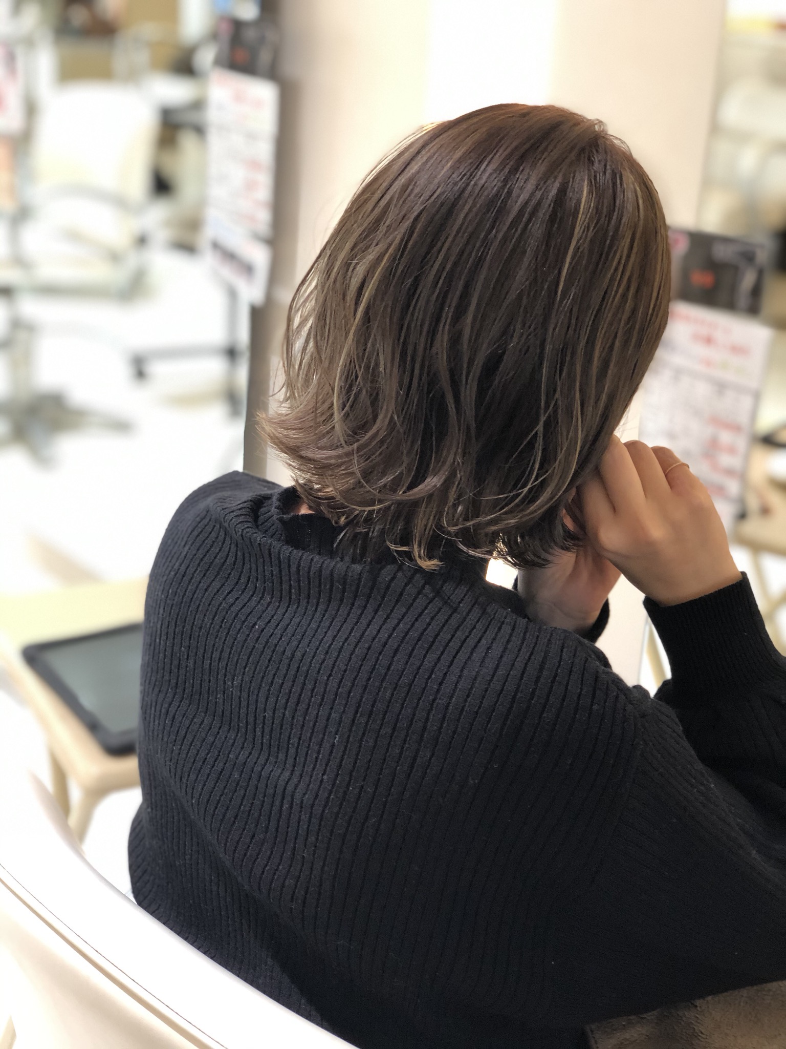 ハイトーングレージュにハイライト多めで軽さと動きを出すスタイル✂︎