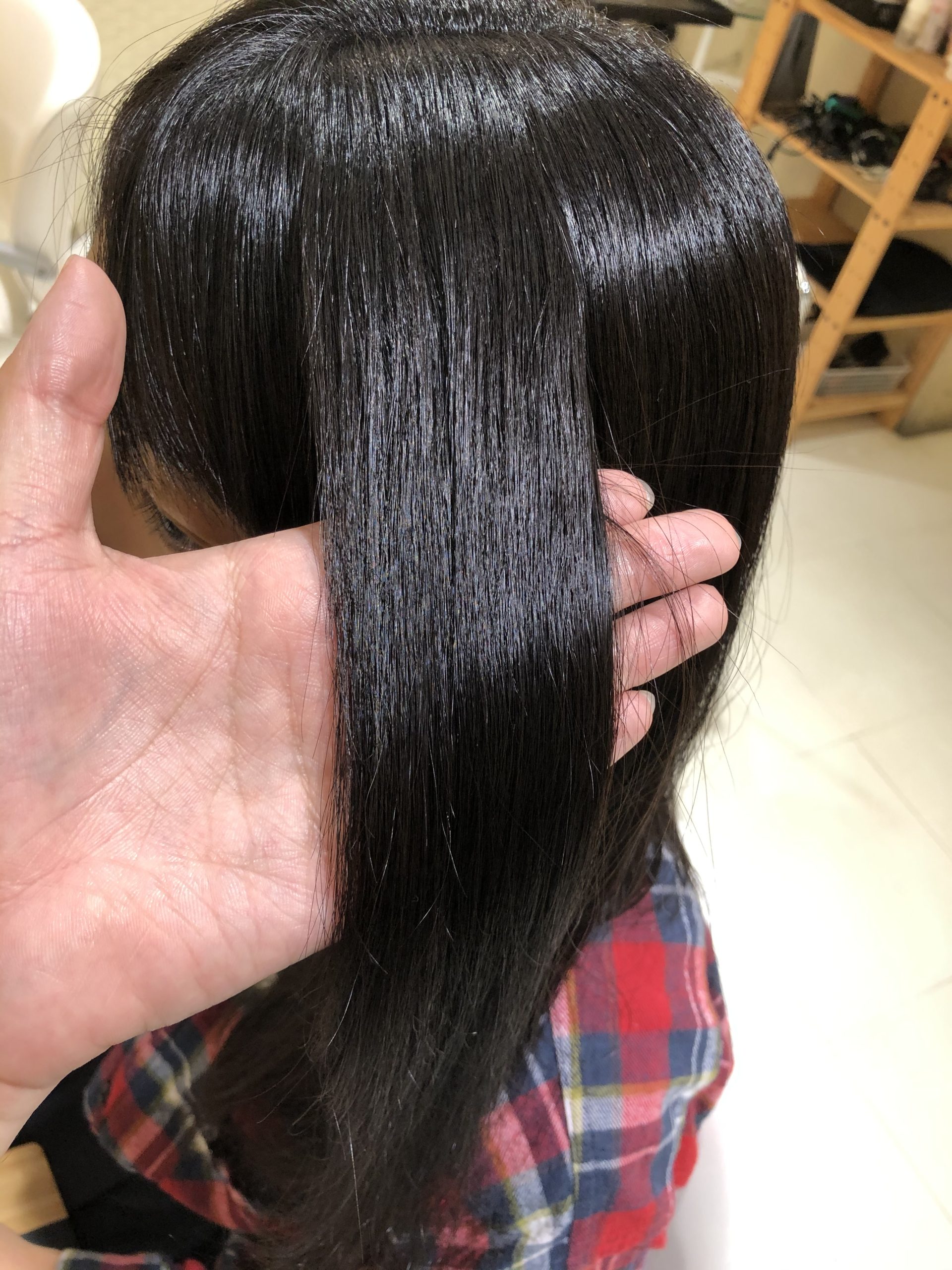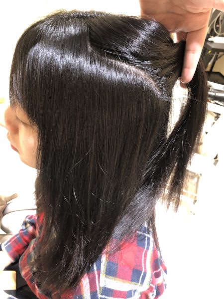 ドライヤーで乾かしただけでこのツヤと真っ直ぐな髪の毛。