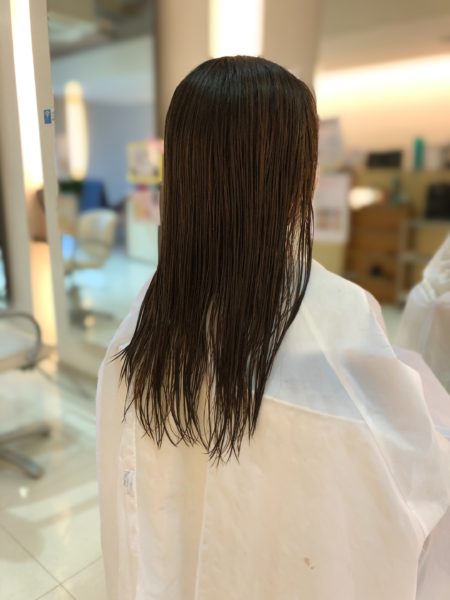 今回のお客様は腰上くらいまである長さを肩上までバッサリと
