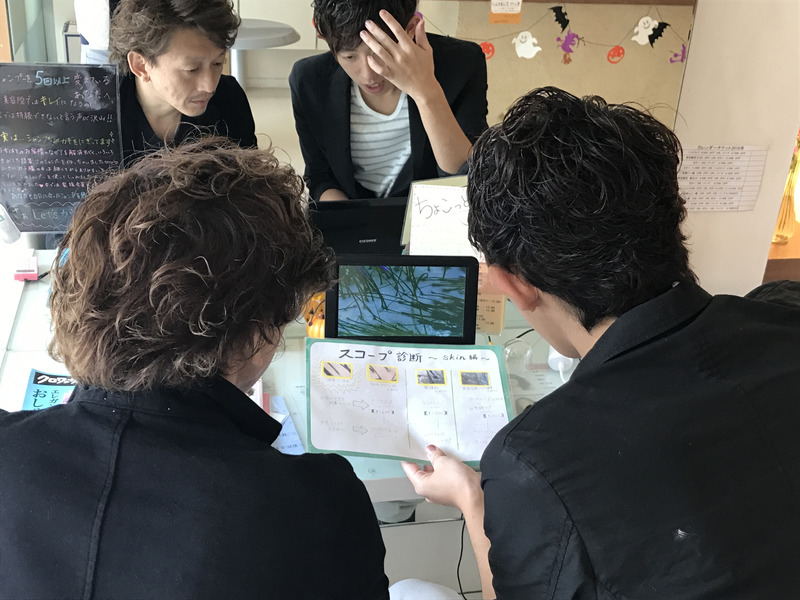 専用のスコープで頭皮の部分、部分で撮影をしていきます。