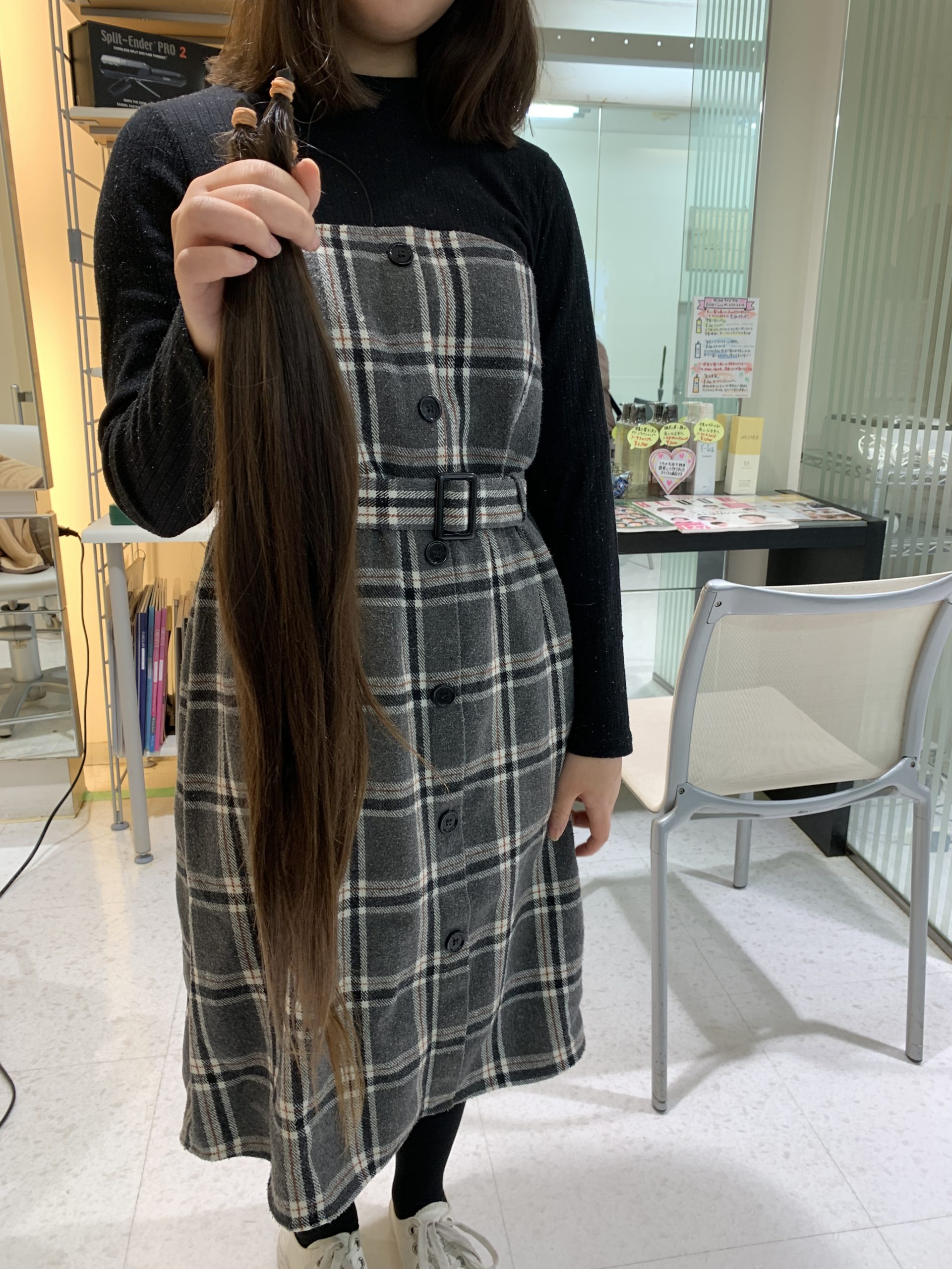 おはようございます!18日が卒業式の女の子がヘアドネーションに来てくれました。 たぶん、卒業式で超驚かれるんだ……