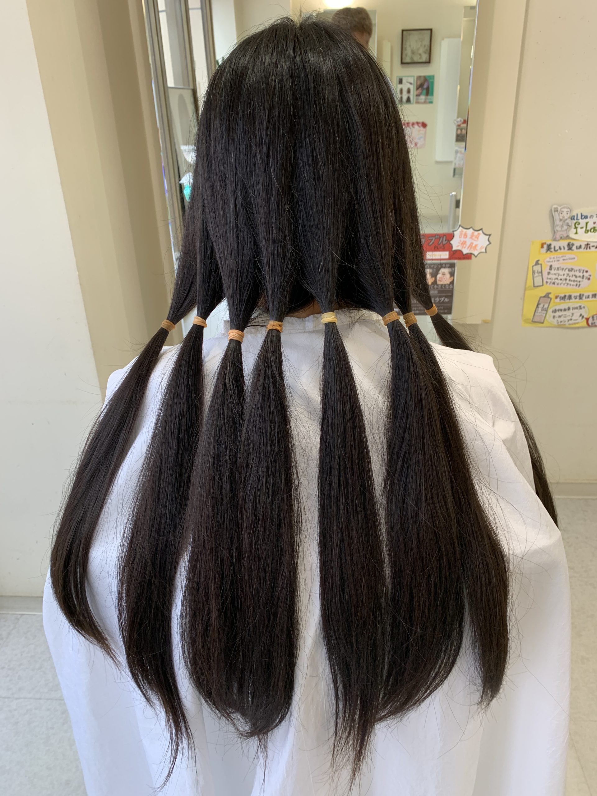 こんにちは!最近ステイホームで美容室に行けなかったので、髪が伸びすぎた!ので、ヘアドネーションができる長さまで……