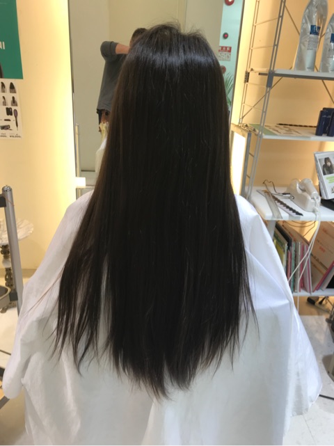 こんばんは。江坂の美容室 ヘア メイク アルバ の 兼武 です。ヘアドネーションでご来店のお客様です。3年間伸……