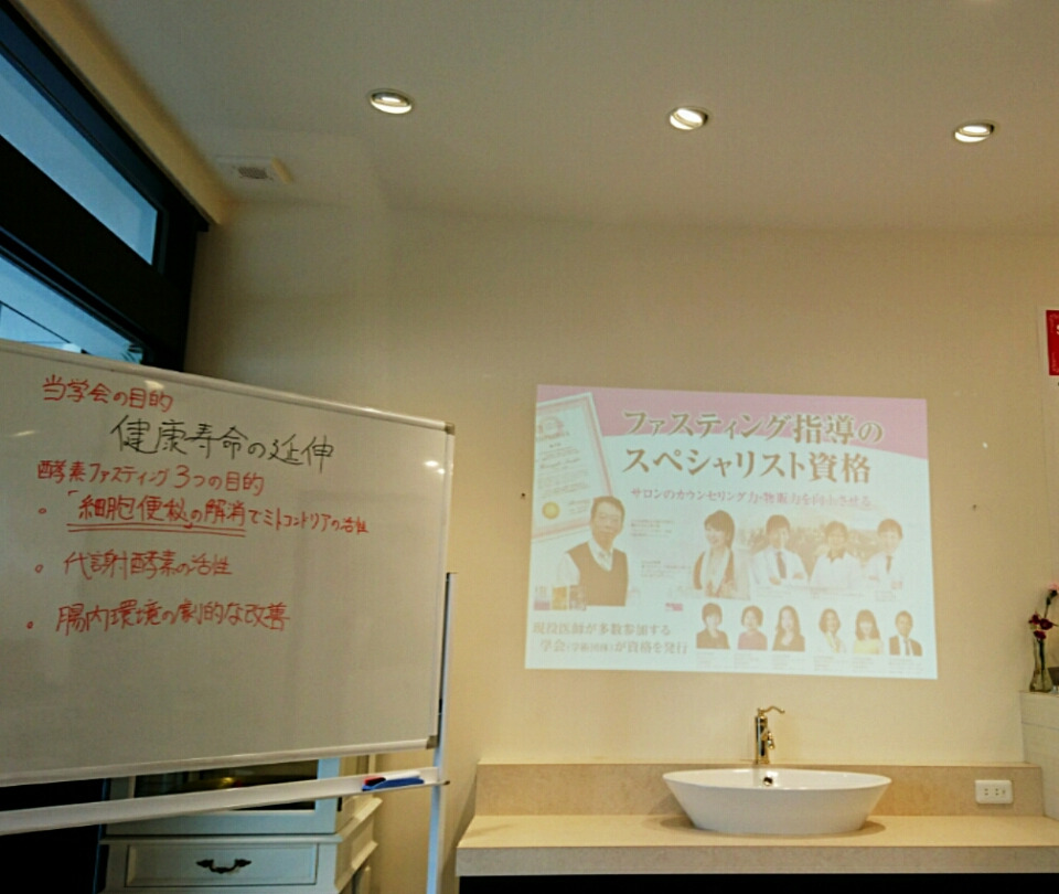 こんばんは。江坂の美容室 ヘア メイク アルバ の兼武です。今日、ファスティング カウンセラーの資格が取れる講……