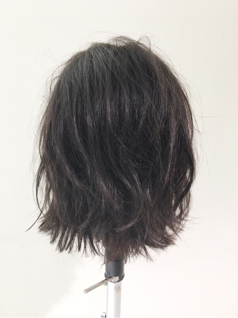こんにちは江坂でスタイリストしてるにっしーです!この間レッスンでウィッグカットしました前下がりミディアム外ハネ……